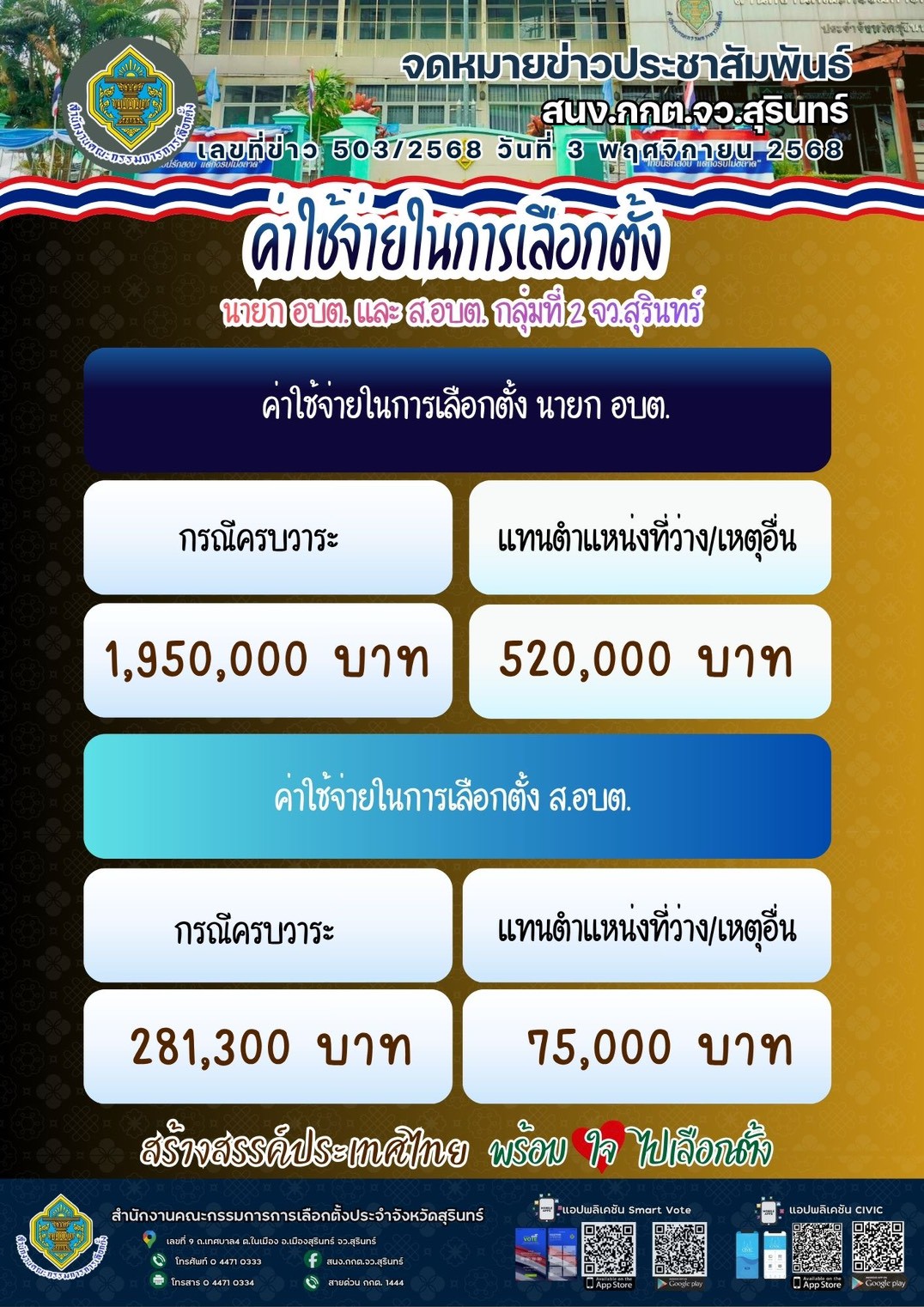 กำหนดจำนวนเงินค่าใช้จ่ายในการเลือกตั้งนายก อบต. แล...