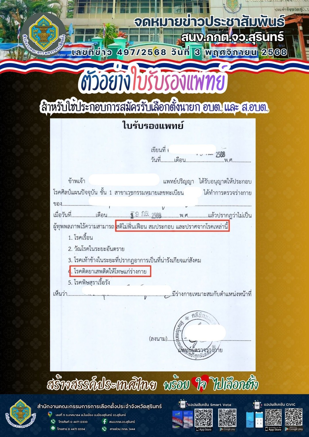 ตัวอย่างใบรับรองแพทย์ สำหรับใช้ประกอบการสมัครรับเล...