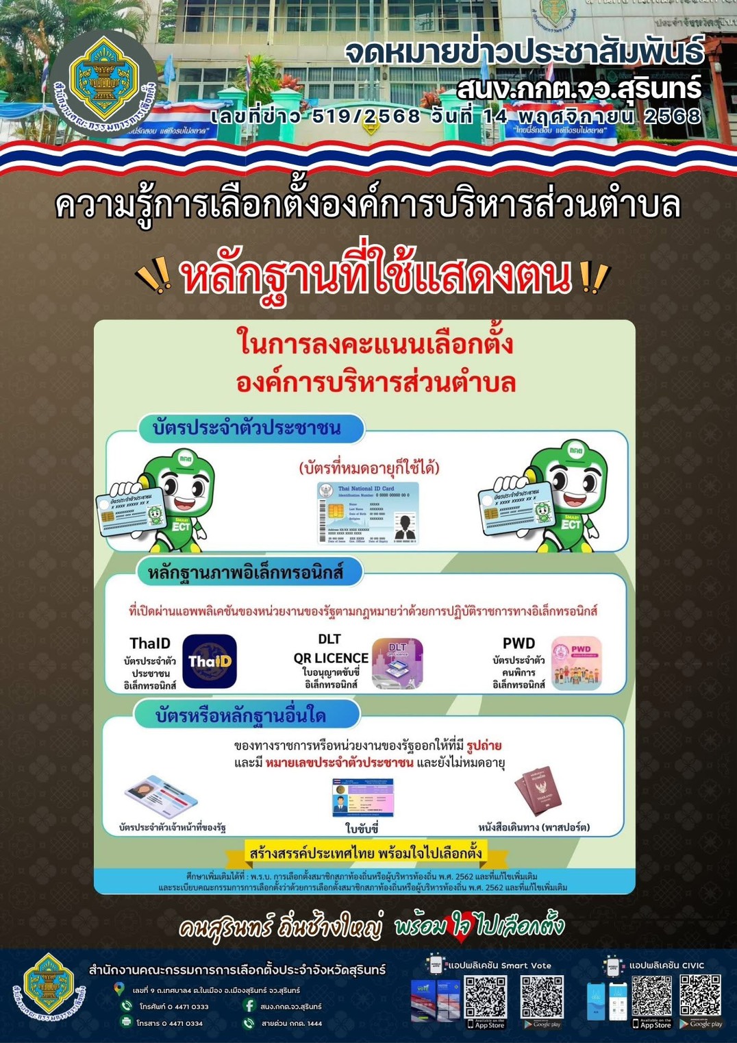 หลักฐานที่ใช้แสดงตน ในการลงคะแนนเลือกตั้งองค์การบริหารส่วนตำบล