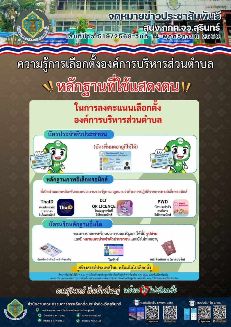 กำหนดจำนวนเงินค่าใช้จ่ายในการเลือกตั้งนายก อบต. และ ส.อบต. กลุ่มที่ 2 จว.สุรินทร์