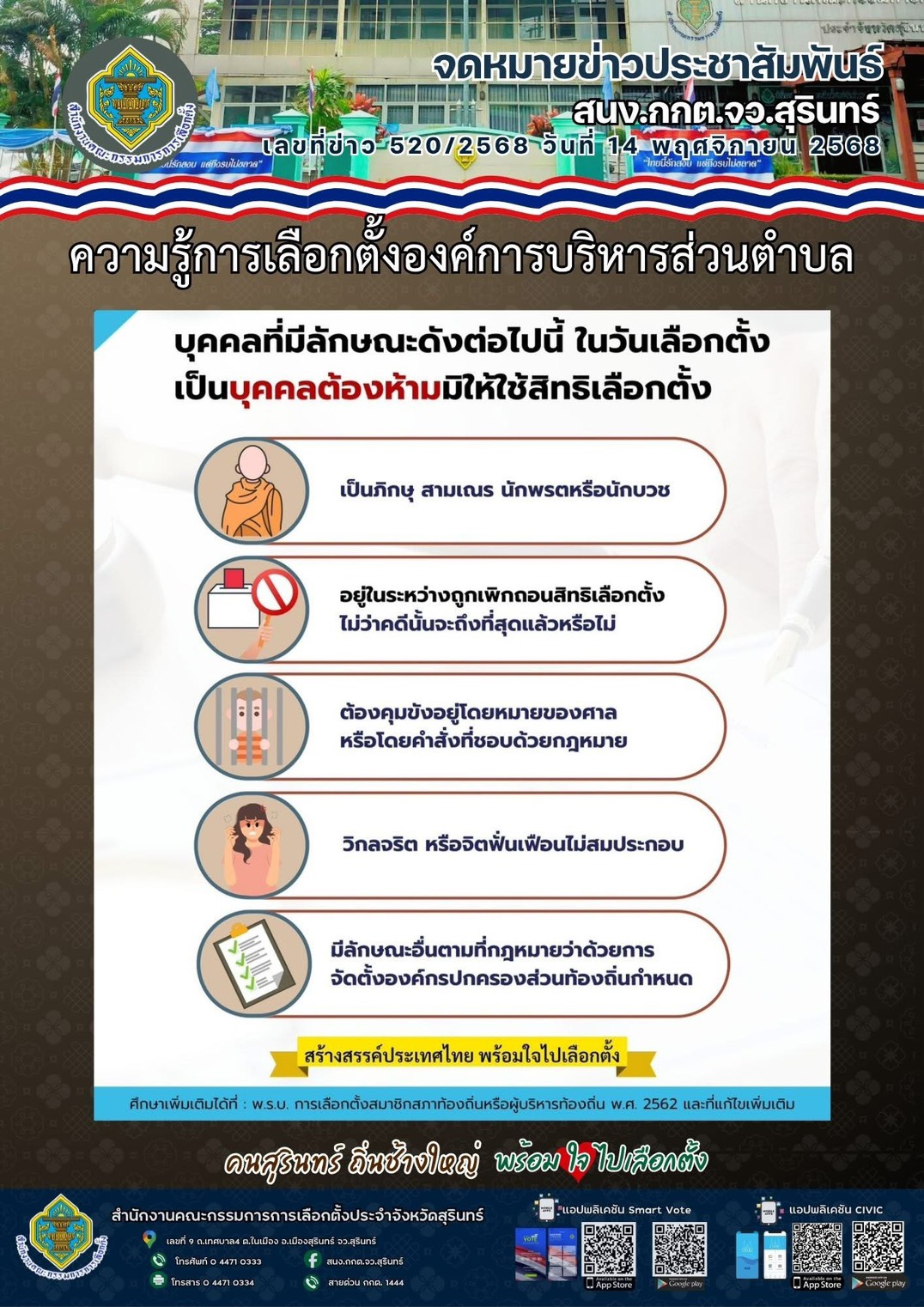 กำหนดจำนวนเงินค่าใช้จ่ายในการเลือกตั้งนายก อบต. และ ส.อบต. กลุ่มที่ 2 จว.สุรินทร์