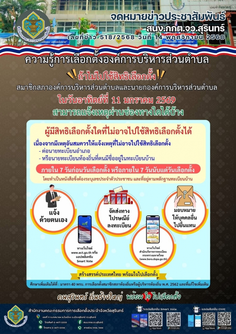 ถ้าไม่ไปใช้สิทธิเลือกตั้ง สามารถแจ้งเหตุผ่านช่องทางใดได้บ้าง